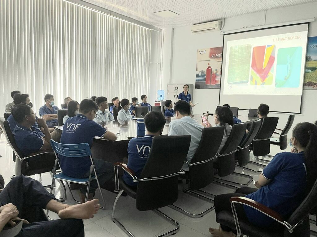 - VNF Hậu Giang đặc biệt quan tâm về chất lượng sản phẩm song song với việc đảm bảo phúc lợi theo quy định pháp luật và chăm lo đời sống tinh thần cho người lao động. Bên cạnh đó, Nhà máy rất chú trọng huấn luyện, đào tạo kiến thức định kỳ cho đội ngũ lao động về quy định ATTP, ATVSLĐ, 5S, nghiệp vụ PCCC và tổ chức các buổi training kỹ năng tin học văn phòng, KAIZEN...