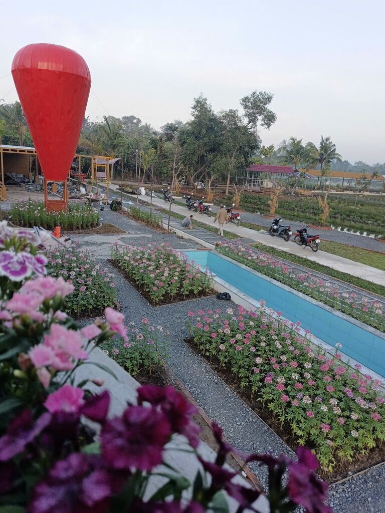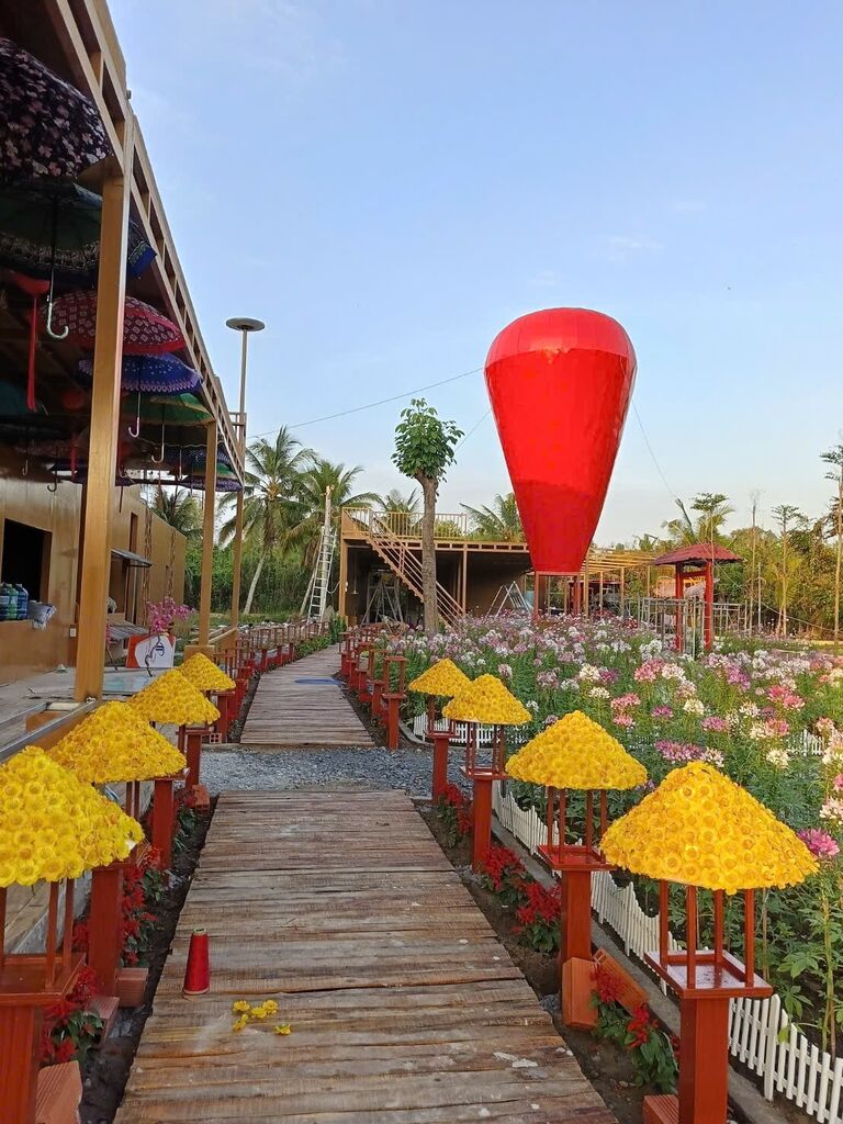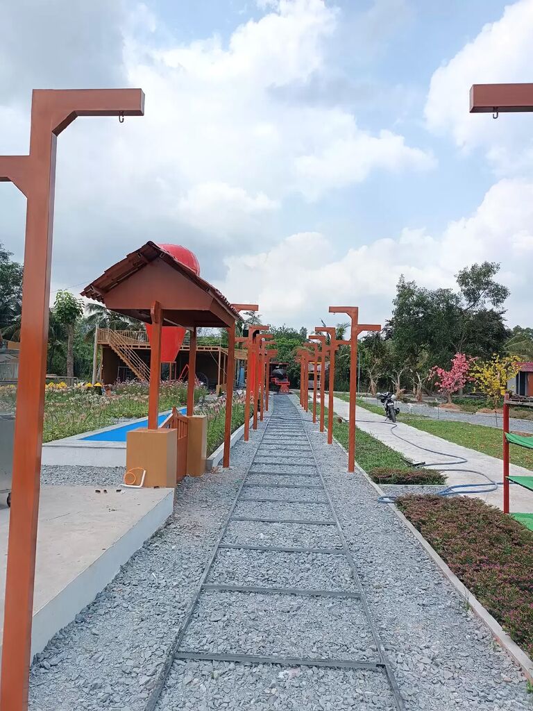 Mang phong cách vibe Đà Lạt kết hợp với không gian sân vườn của miền tây : sông nước, cây trái...với rất nhiều góc chụp chill chill và các hoạt động...
